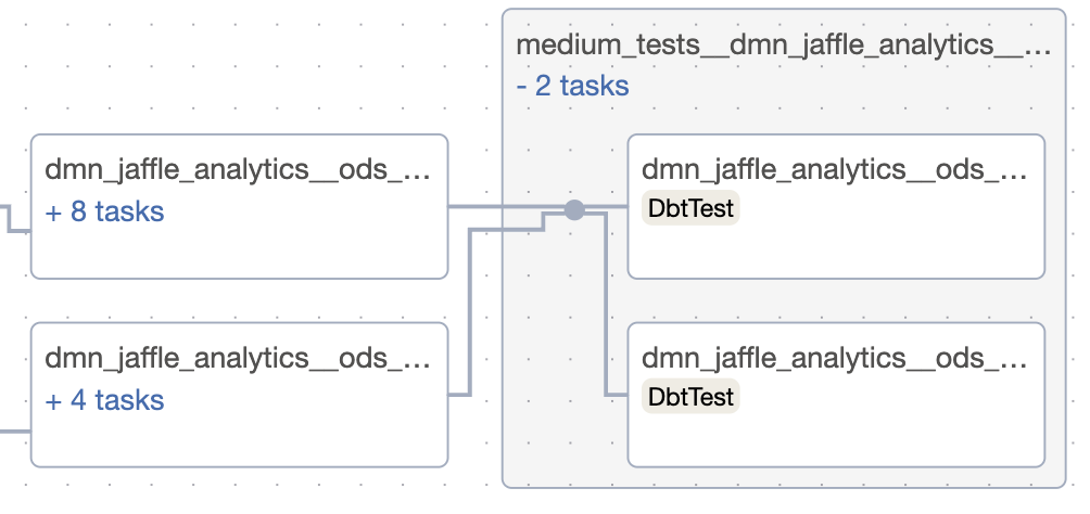 All dbt tests that are not tagged get @small tag. All small tests for one models will be collected in the same task group. They will be run immediately after the models are finished, and if any of them fails, the downstream models won't be executed.